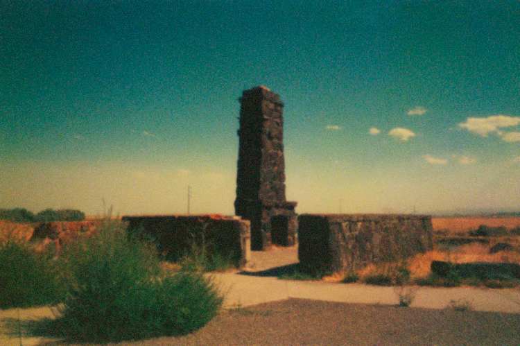Manzanar guard shack and plaque, 1990